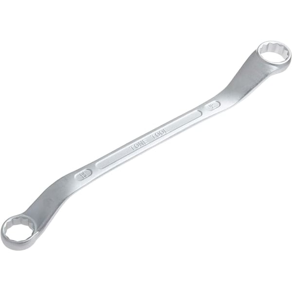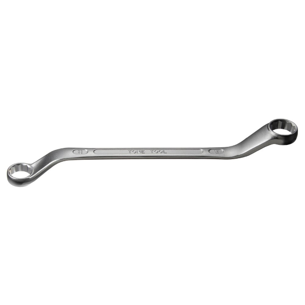 Long ring wrench offset 45 degree angle for avoiding surrounding obstacles made of structural steel mirror satin finish length 324 mm size 22 x 24 mm