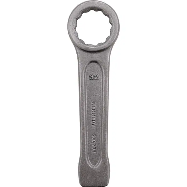 Safety slogging wrench with flat ring 12-point profile forged in resilient steel burnished finish long version for high levels of torque length 195 mm size 32 mm