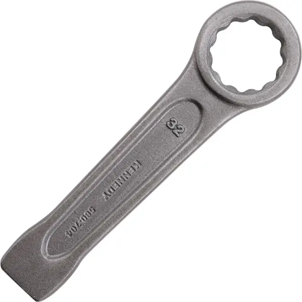 Safety slogging wrench with flat ring 12-point profile forged in resilient steel burnished finish long version for high levels of torque length 205 mm size 36 mm
