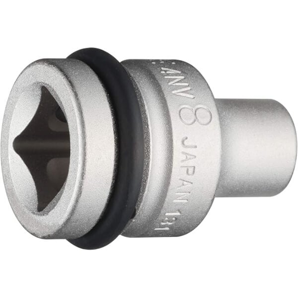 Impact hexagon socket 1/2 inch square drive made of structural steel with electroless plating for improved appearance quality and rust prevention length 38 mm size 8 mm