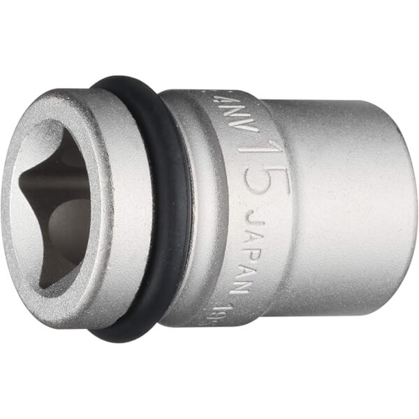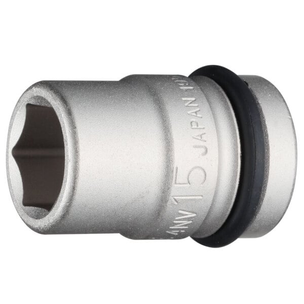 Impact hexagon socket 1/2 inch square drive made of structural steel with electroless plating for improved appearance quality and rust prevention length 38 mm size 15 mm