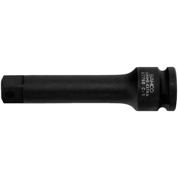 Extension bar 3/8 inch square drive made of High-performance alloy steel phosphate finish with borehole for locking pin or safety spring overall length 75 mm