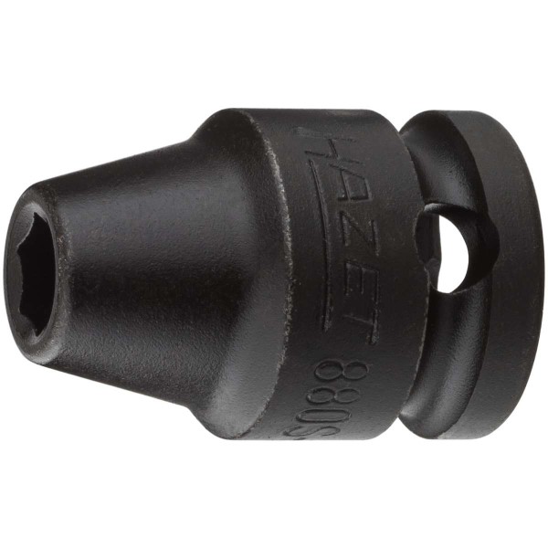 Impact hexagon socket 3/8 inch square drive phosphate finished with hexagon traction-profile and borehole for locking pin length 28 mm size 6 mm