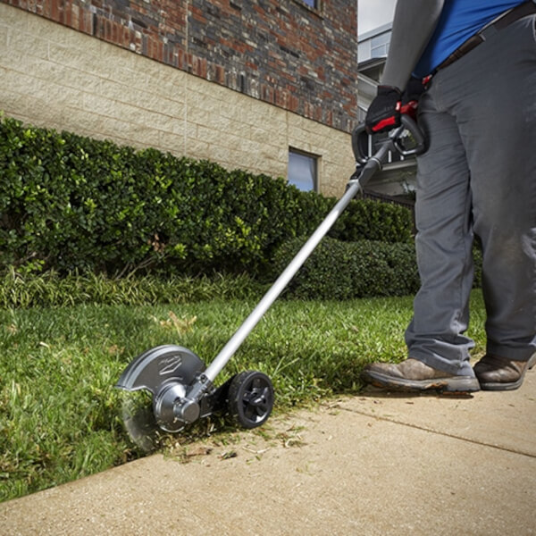 Quik-lok Edger attachment standard 203 mm edger blade speed up to 3900 rpm length 124 cm get the perfect lawn, sidewalk and path edges creating a sharp and manicured look