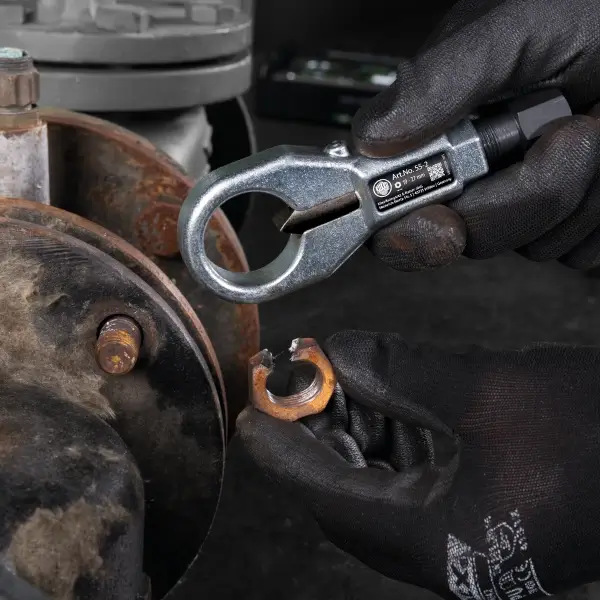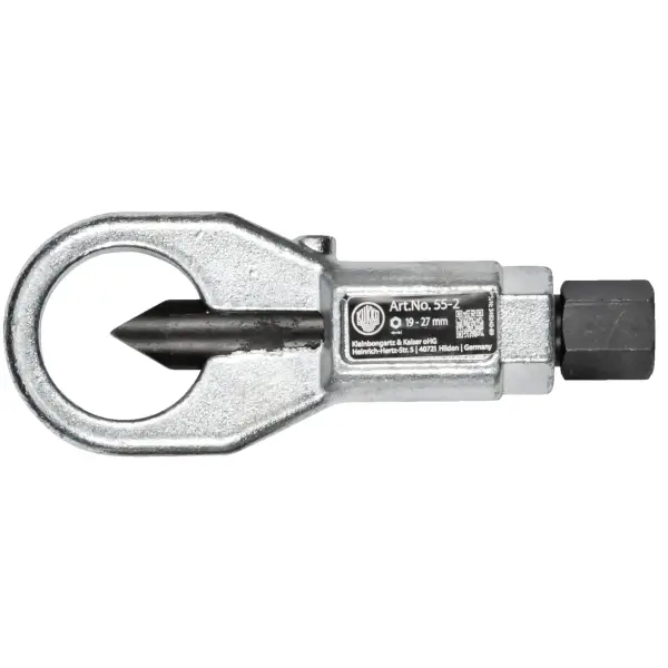 Mechanical nut splitter with single cutting-edge, for splitting stuck, rusted, or over-tightened nuts with a tensile strength of up to 800 N/sq.mm in confined space suitable for splitting nut size 19 – 27 mm