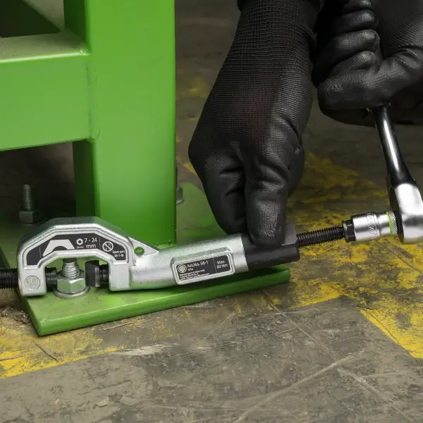 Hydraulic nut splitter with single cutting-edge, for splitting particularly large, stuck, rusted, or overtightened nuts of quality classes 5, 6, 8, and 10 suitable for splitting nut size 22 – 36 mm