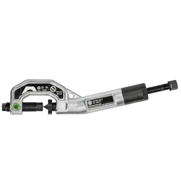 Universal puller with 2 parallel and slender jaws for pulling bearings, gears, and discs depth clamping 100 mm outside clamping width 28 - 100 mm inside clamping width 80 - 105 mm Max tractive force 2T