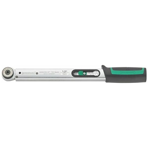 MANOSKOP Quick adjustable torque wrench for insert square 9×12 mm twin scales Nm/ft-lb deviation value 4% length 380 mm with fine-tooth ratchet 3/8 inch square drive size 6-50 Nm (5-36 ft-lb)