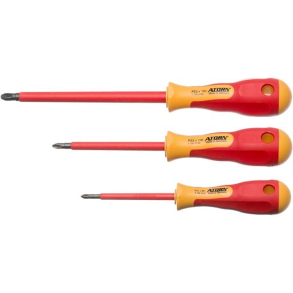Pozidriv screwdriver with hardened chrome-vanadium/molybdenum steel 2-component power grip insulated 3 pieces size PZ1/PZ2/PZ3 VDE