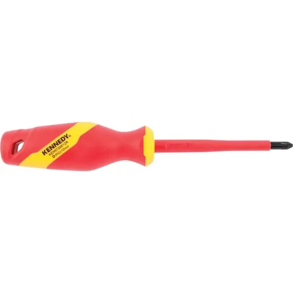 Insulated Phillips screwdriver made of chrome-vanadium steel and a dual-layer insulated handle for comfortable, anti-slip control, blade length 100 mm size is PH 2 safe for electrical work on live VDE certified