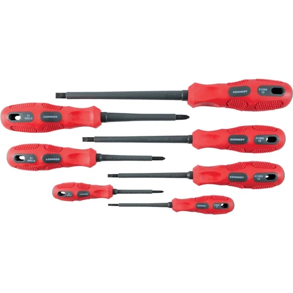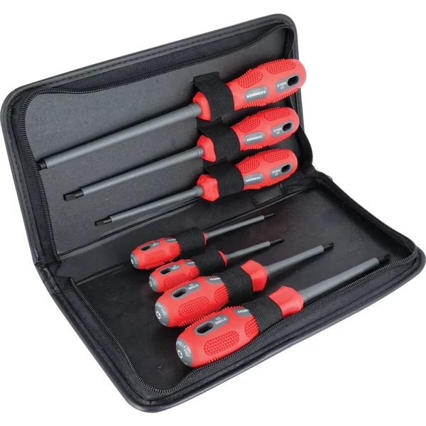 Set of VDE-certified Slotted and Phillip screwdriver 7-piece maximises safety when working with electricity, fully insulated chrome vanadium steel blade with professional high-grip handle, supplied in a zipped carry wallet