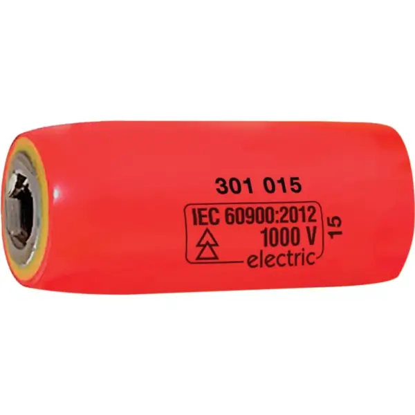 Insulated screwdriver bit adapter has a 1/4-inch square drive for screwdriver bits and a 1/4-inch hexagonal drive with multi-layer insulation to protect against up to 1000 volts of electricity VDE-certified