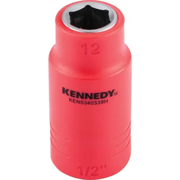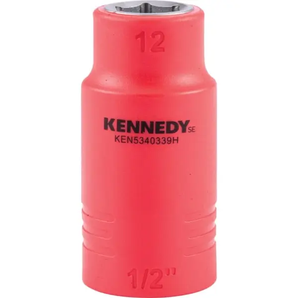 Insulated hexagon socket with a 1/2-inch square drive made of high-strength chrome vanadium steel and finished with durable insulation, excellent electrical protection improves user safety, size 12 mm VDE certified