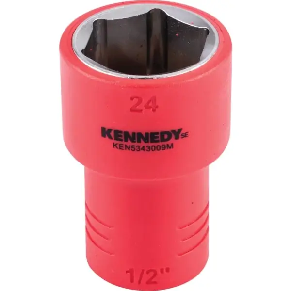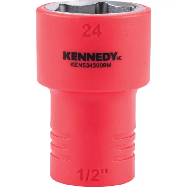 Insulated hexagon socket with a 1/2-inch square drive made of high-strength chrome vanadium steel and finished with durable insulation, excellent electrical protection improves user safety, size 24 mm VDE certified