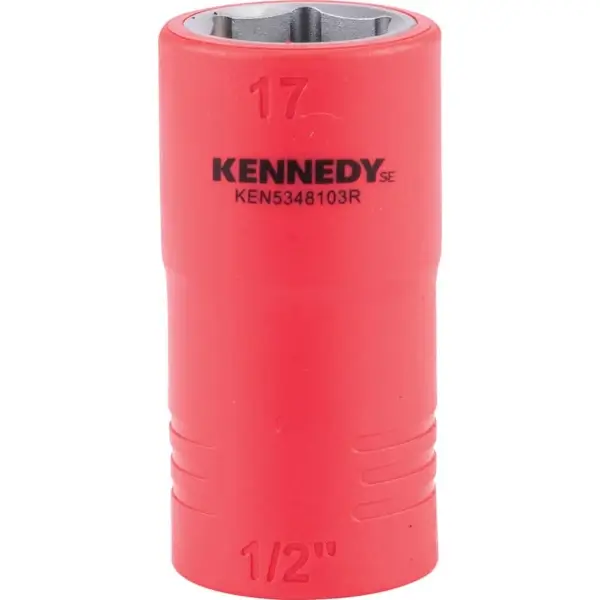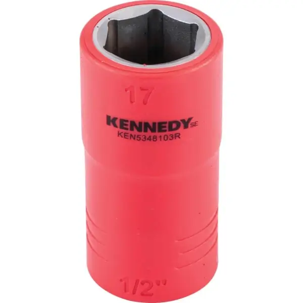 Insulated hexagon socket with a 1/2-inch square drive made of high-strength chrome vanadium steel and finished with durable insulation, excellent electrical protection improves user safety, size 17 mm VDE certified