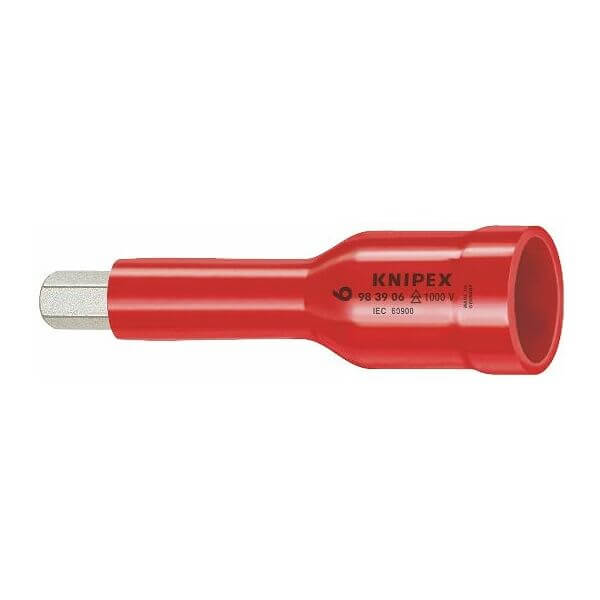 Insulated hexagon bit socket drive square 3/8 inch made of special tool steel length 75 mm size 5 mm VDE