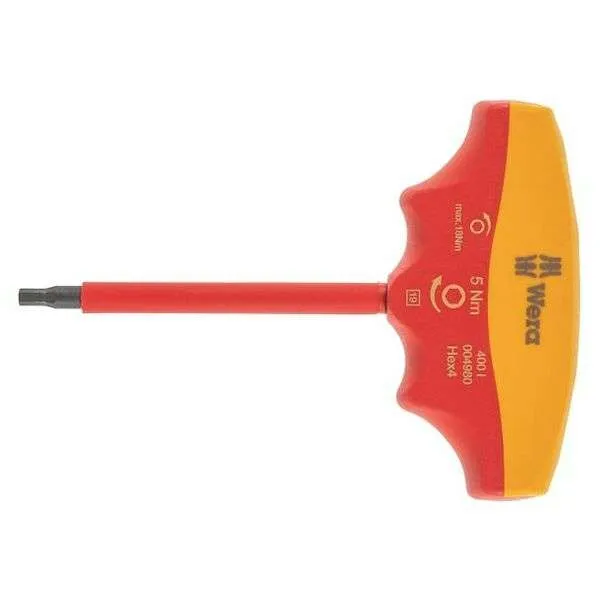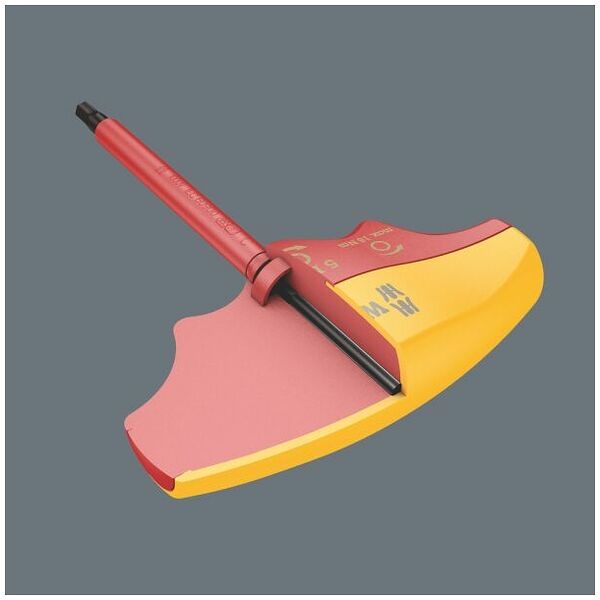 Insulated T-handle torque screwdriver with pre-set and tamperproof torque value at 5.0 Nm blades length 90 mm for hexagon screws Hex-Plus profile size 4 mm VDE