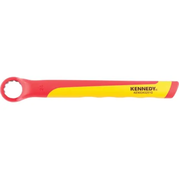 Insulated ring wrench made of high-grade chrome-vanadium steel and has an ergonomic, non-slip handle. The fully insulated body prevents electric shock and short circuits, size 24 mm VDE certified