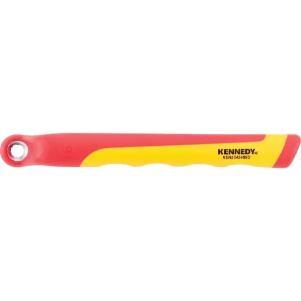 Insulated ring wrench made of high-grade chrome-vanadium steel and has an ergonomic, non-slip handle. The fully insulated body prevents electric shock and short circuits, size 6 mm VDE certified