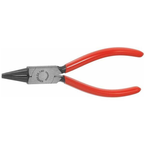คีมปากแหลม ปากทรงกลมสั้น ผิวรมดำขัดเงา หัวคีมกว้าง 16.5 มม. ด้ามจับเคลือบพลาสติก ขนาด 140 มม.