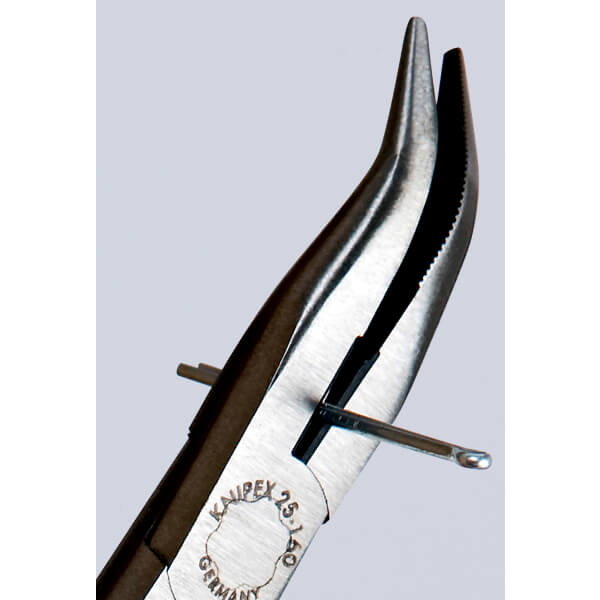 คีมปากแหลมงอ 40 องศา มีคมตัดด้านข้าง ชุบโครเมี่ยม คมตัดแข็ง 61 HRC ด้ามจับหุ้มยางจับกระชับมือ ขนาด 160 มม.