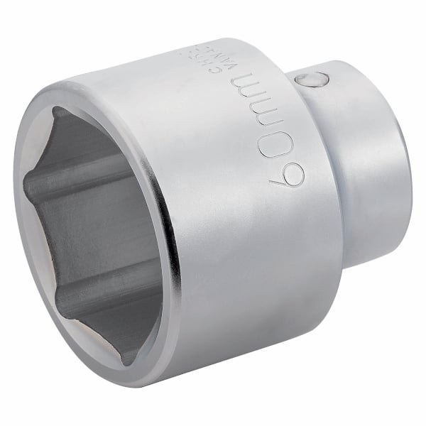 ลูกบ๊อกซ์ 12 เหลี่ยม หัวขับขนาด 1 นิ้ว ทำจากเหล็กโครเมียม-วาเนเดียม ชุบโครเมียมด้าน มีปุ่มปลดล็อกสลัก ยาวทั้งตัว 70 มม. ขนาด 41 มม.