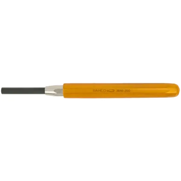 เหล็กส่งตอกสลักปลายขนาน พร้อมหัวกระแทกนิรภัย ผลิตจากเหล็กอัลลอยด์ประสิทธิภาพสูง เคลือบนิกเกิล ก้านแปดเหลี่ยมเคลือบพลาสติก ขนาด 12 มม. ความยาวทั้งตัว 180 มม. เส้นผ่านศูนย์กลางปลาย 6 มม.