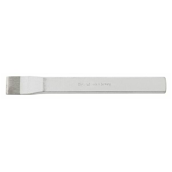 สิ่วสกัดปากแบน พร้อมการ์ดมือ ทำจากเหล็กกล้าหลอมชุบแข็งสม่ำเสมอ 54-58 HRC เคลือบแล็กเกอร์ ขนาดใบมีด 7 x 26 มม. ความยาวทั้งตัว 240 มม.