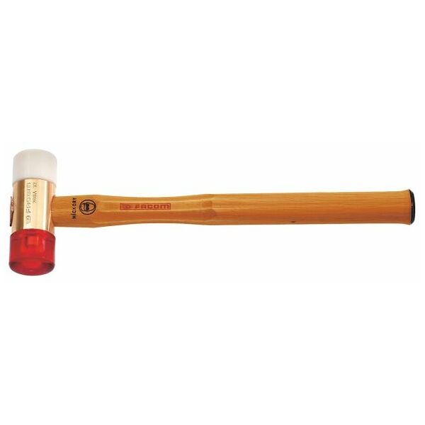 ค้อนหัวโพลียูรีเทนและไนลอน ถอดเปลี่ยนหัวได้ ตัวเรือนทำจากเหล็กเพื่อเพิ่มน้ำหนัก หัวค้อนขนาด 50 มม.