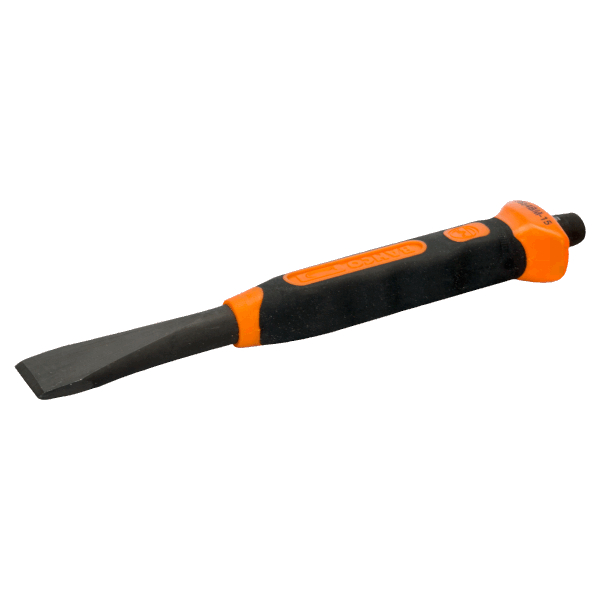 สิ่วสกัดปากแบน พร้อมด้ามจับ 2 ส่วนเพื่อการจับที่สบายมือและเพิ่มความปลอดภัยขณะใช้งาน ความยาวทั้งตัว 155 มม. ความแข็งปลาย 56-58 HRC ยาว 27 มม. ความกว้างปลาย 15 มม.