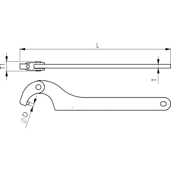 ประแจตะขอ แบบปรับได้ สำหรับขันน็อตล็อคเพลาแบบสลักข้าง ผลิตจากเหล็กคุณภาพสูง ชุบโครเมียมซาติน ความยาวรวม 215 มม. ขนาด 10-50 มม.