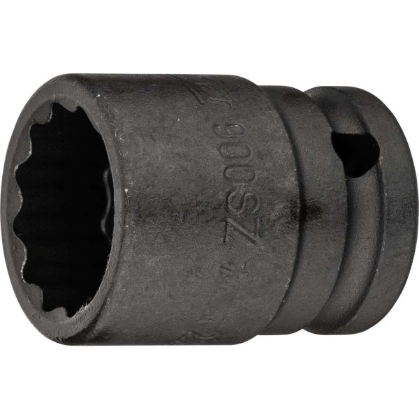 ลูกบ๊อกซ์กระแทก 12 เหลี่ยม หัวขับสี่เหลี่ยม 1/2 นิ้ว ด้าน 12 เหลี่ยมแบบ traction-profile เคลือบฟอสเฟต มีรูสำหรับล็อคสลัก ยาวทั้งตัว 38 มม. ขนาด 12 มม.