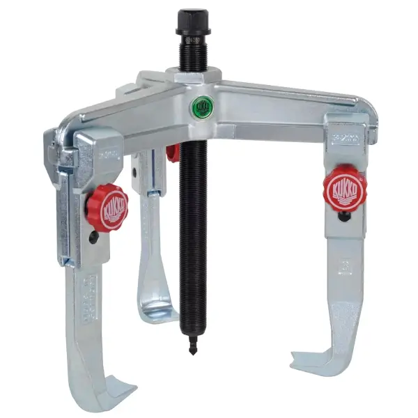 เหล็กดูดลูกปืนอเนกประสงค์ 3 ขา พร้อมขาปรับเร็ว สำหรับดึงตลับลูกปืน เฟือง และจาน ความลึกในการจับยึด 200 มม. ความกว้างในการจับยึดด้านนอก 105 - 375 มม. ด้านใน 180 - 440 มม. แรงดึงสูงสุด 15 ตัน