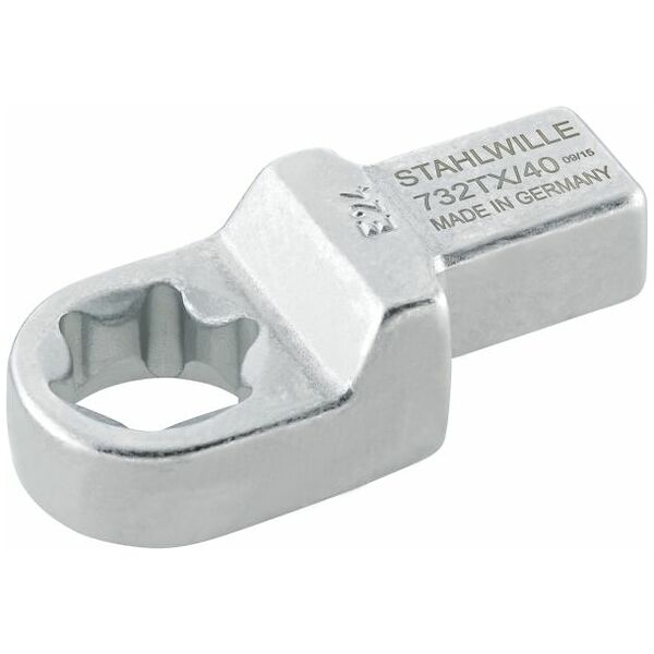 หัวต่อประแจขันแรงบิด 14x18 มม. สำหรับสกรู Torx ผลิตจากเหล็กขึ้นรูปด้วยความร้อนและหล่อเย็นในน้ำมัน ชุบโครเมียมเ-นิกเกิล ความยาวประสิทธิผล 25 มม. ขนาด E18