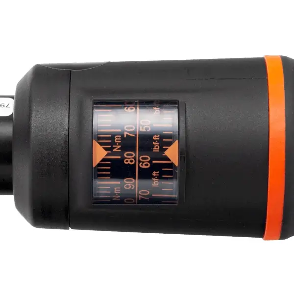 MANOSKOP ประแจขันแรงบิด แบบปรับค่าได้ หัวต่อสี่เหลี่ยม 9x12 มม. มีสองสเกล Nm/ft-lb ค่าเบี่ยงเบน 3% ถอดตัวปรับได้ เพื่อป้องกันการปรับโดยที่ไม่ได้ตั้งใจ ความยาว 386 มม. ขนาด 20-100 Nm (15-75 ft-lb)
