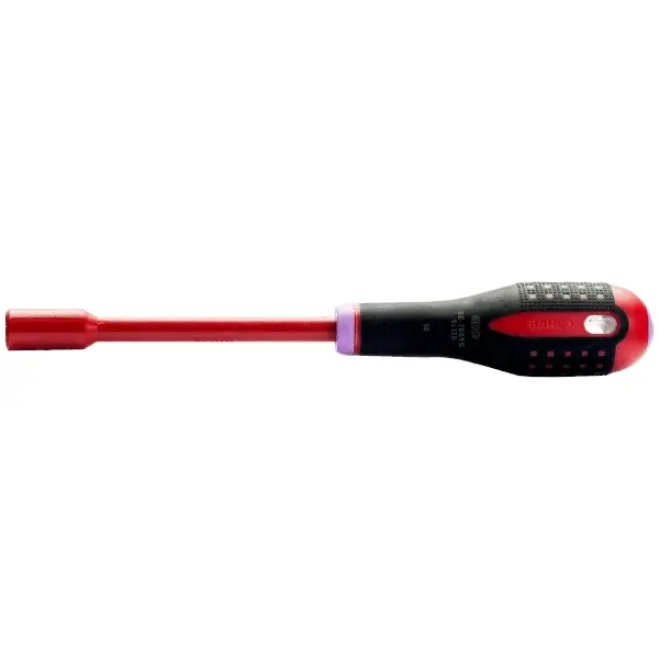 ไขควงปลายบ๊อกซ์หกเหลี่ยม ทำจากเหล็กโครมวานาเดียมโมลิบดีนัม แกนยาว 125 มม. ด้ามจับหุ้มฉนวนกันไฟฟ้า ขนาด 8 มม. VDE