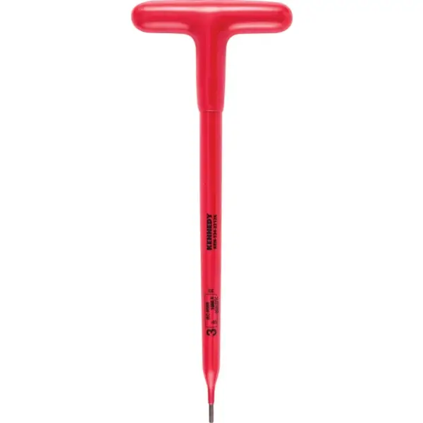 ไขควงปลายบ๊อกซ์หกเหลี่ยม ด้ามจับรูปตัว T หุ้มฉนวนกันไฟฟ้า สำหรับใช้งานในพื้นที่ที่มีไฟฟ้าแรงสูงสูงสุด 1,000 V AC ความยาว 200 มม. ขนาด 8 มม. VDE