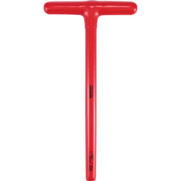 ไขควงปลายบ๊อกซ์หกเหลี่ยม ด้ามจับรูปตัว T หุ้มฉนวนกันไฟฟ้า สำหรับใช้งานในพื้นที่ที่มีไฟฟ้าแรงสูงสูงสุด 1,000 V AC ความยาว 230 มม. ขนาด 13 มม. VDE