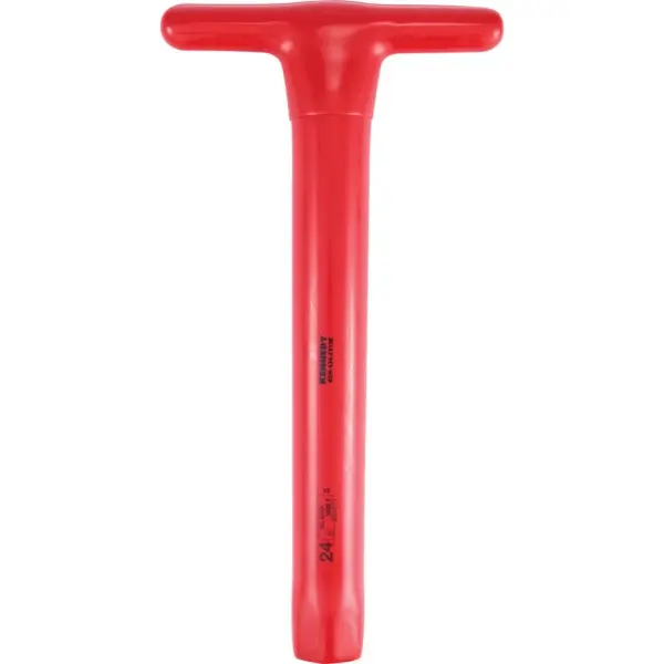 ไขควงปลายบ๊อกซ์หกเหลี่ยม ด้ามจับรูปตัว T หุ้มฉนวนกันไฟฟ้า สำหรับใช้งานในพื้นที่ที่มีไฟฟ้าแรงสูงสูงสุด 1,000 V AC ความยาว 230 มม. ขนาด 13 มม. VDE