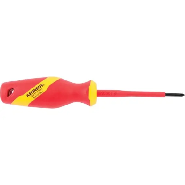ไขควงปากแฉกหุ้มฉนวน ผลิตจากเหล็กโครมวานาเดียม ด้ามจับหุ้มฉนวนสองชั้นเพื่อการจับที่สบายและป้องกันการลื่นไถล ความยาวก้าน 75 มม. ขนาด PH 0 ปลอดภัยสำหรับงานไฟฟ้าที่มีกระแสไฟ ได้รับการรับรองมาตรฐาน VDE