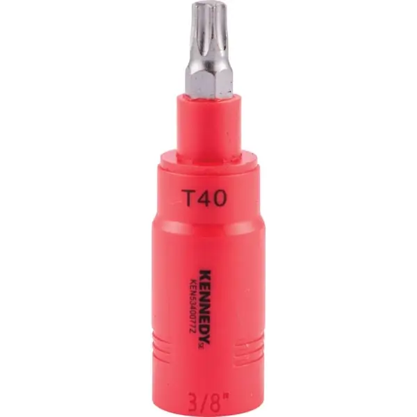 ลูกบ๊อกซ์เดือยโผล่ 3/8 นิ้ว ปลาย Torx ทำจากเหล็กกล้าเครื่องมือพิเศษ หุ้มฉนวนกันไฟฟ้า ยาวทั้งตัว 117 มม. ขนาด TX 50 VDE