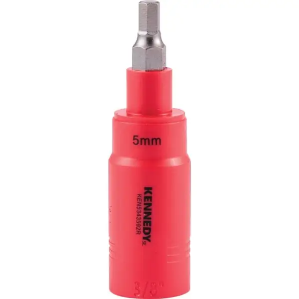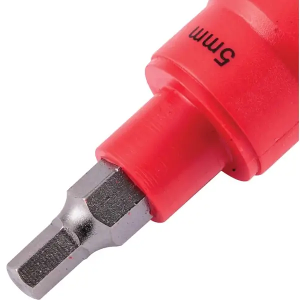 ลูกบ๊อกซ์เดือยโผล่ หัวขับ 3/8 นิ้ว ปลายหกเหลี่ยม ทำจากเหล็กเครื่องมือพิเศษ หุ้มฉนวนกันไฟฟ้า ขนาด 5 มม. VDE