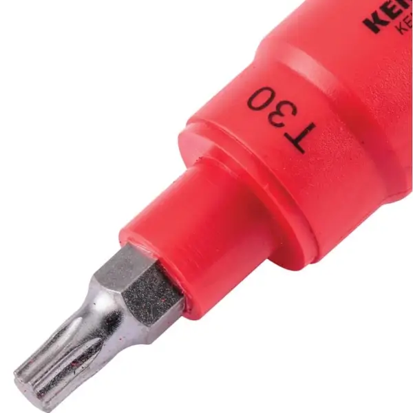 ลูกบ๊อกซ์เดือยโผล่ 3/8 นิ้ว ปลาย Torx ทำจากเหล็กกล้าเครื่องมือพิเศษ หุ้มฉนวนกันไฟฟ้า ยาวทั้งตัว 123 มม. ขนาด TX 30 VDE