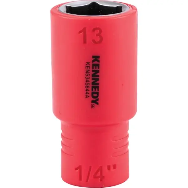 ลูกบ๊อกซ์หกเหลี่ยม 3/8 นิ้ว ทำจากเหล็กโครเมี่ยมวาเนเดียม หุ้มฉนวนกันไฟฟ้า ยาว 45 มม. ขนาด 13 มม. VDE