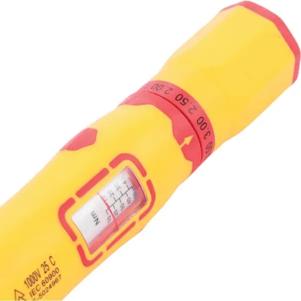 ไขควงแรงบิดปรับค่าได้ TorqueVario-S-electric สำหรับทำงานกับชิ้นส่วนไฟฟ้าที่มีกระแสไฟฟ้าสูงถึง 1000 V AC พร้อมมาตราส่วนตัวเลขรับประกันกลไกแรงบิดที่ปลอดภัยในการใช้งาน ช่วงแรงบิด 2.0 - 7.0 Nm ความคลาดเคลื่อน 6% VDE