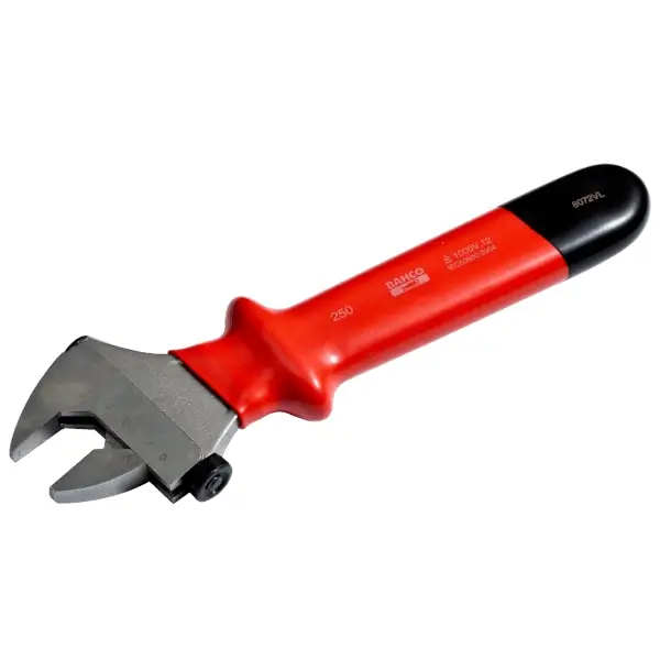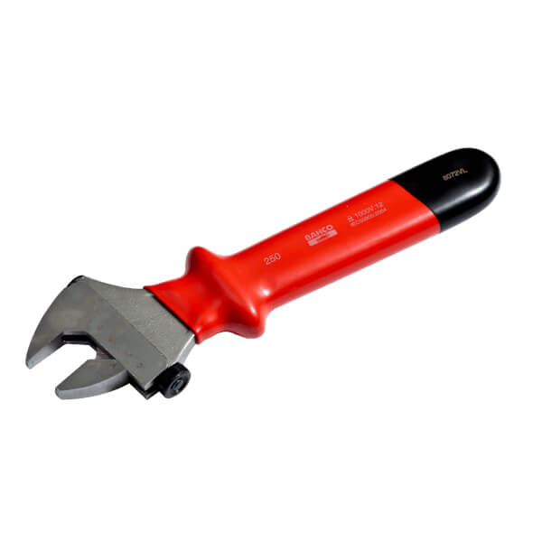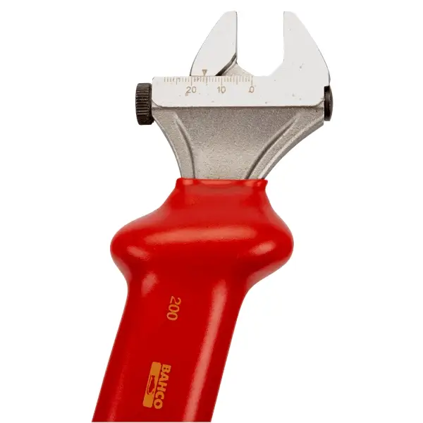 ประแจเลื่อน แบบปรับสกรูด้านข้าง พร้อมมาตราส่วนเลเซอร์ ผลิตจากเหล็กอัลลอยด์ประสิทธิภาพสูง ชุบโครเมียม หุ้มฉนวนกันไฟฟ้าแบบจุ่ม สำหรับทำงานกับอุปกรณ์ที่มีไฟฟ้าสูงสุด 1000 V ปากเปิดกว้างสุด 21 มม. ความยาว 165 มม. VDE