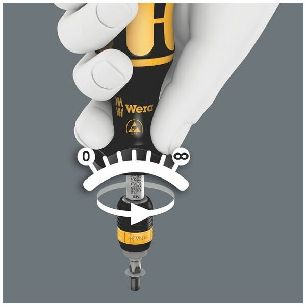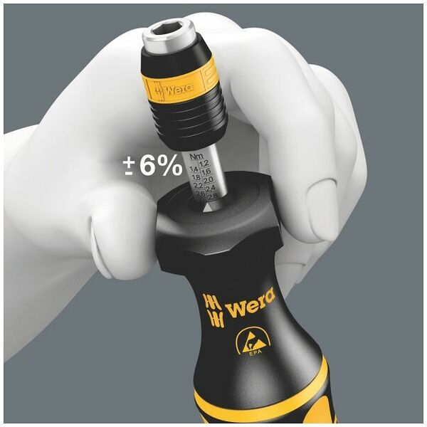 可调扭矩螺丝刀配Rapidaptor快速释放夹头,适用于六角螺丝刀头1/4英寸(C 6.3和E 6.3规格),带防静电保护功能,手柄尺寸0.3-1.0牛米,ESD防静电处理