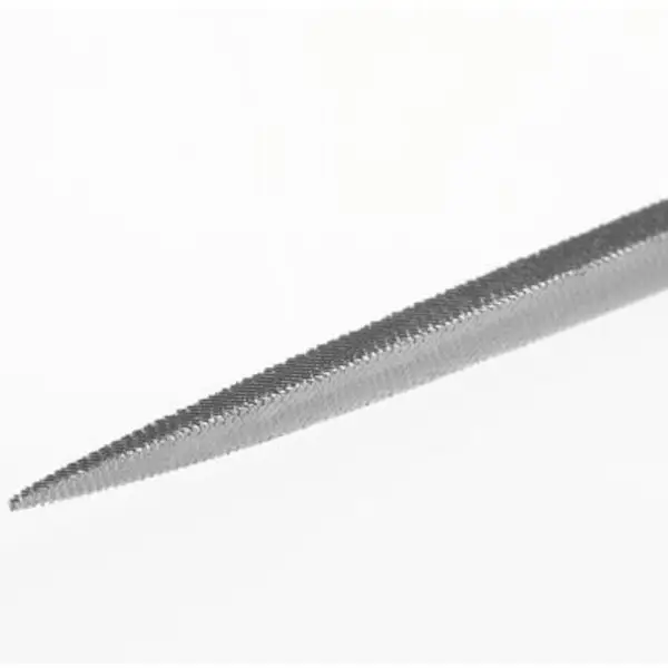 针状三角锉,双刃型(杂锉),适用于精细锉削与抛光作业,刃口呈锥形尖端且具三角形轮廓,截面3.7毫米,总长160毫米