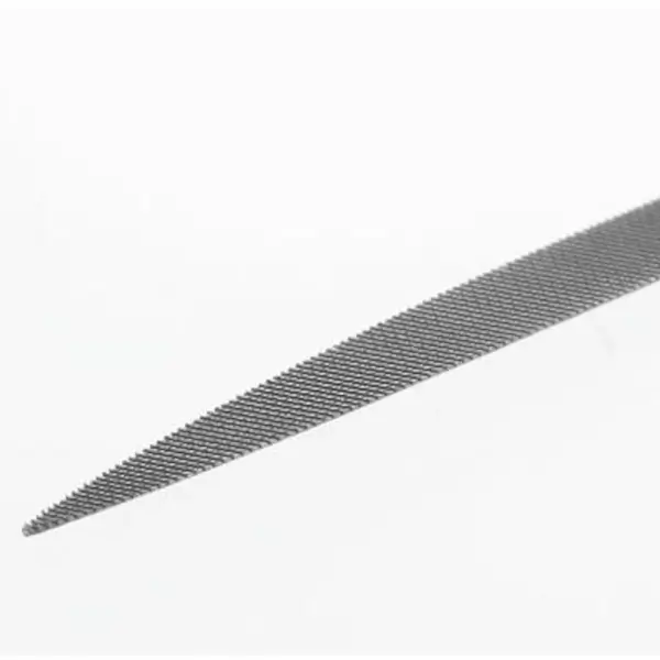 针式巴雷特锉刀,双刃型(超平滑切削),适用于精细锉削与抛光作业,刃口呈锥形尖端及三角形,截面5.3×2.1毫米,总长160毫米