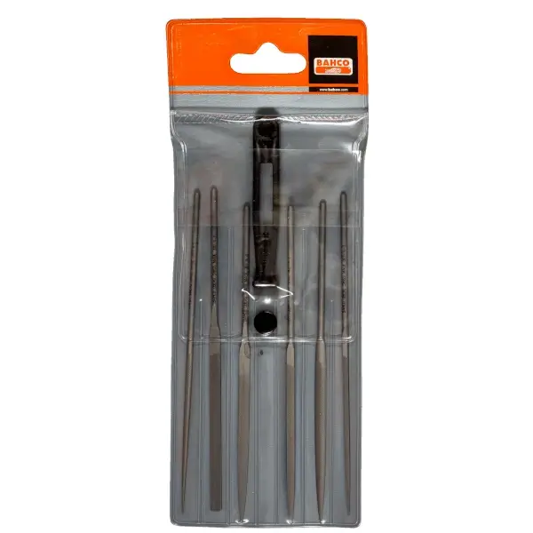 针锉套装,双刃型(平刃)适用于精细锉削与抛光作业,总长140毫米,含6件及1柄,塑料收纳袋装